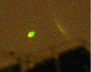 2013年6月6日凌晨,武漢市區(qū)電閃雷鳴。《武漢晨報(bào)》攝影記者石一在機(jī)場(chǎng)高速公路與馬池路交會(huì)處附近的一個(gè)小區(qū)拍攝雷電時(shí),無意中拍到幾個(gè)綠黃色神秘光團(tuán)(圖2、3)。[2]