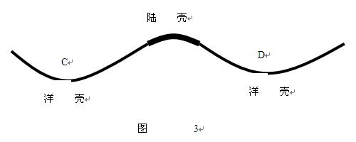 冰輒理論認(rèn)為:大洋地殼中心沉降的過程中,不僅表現(xiàn)為對于板塊交界地帶的撕裂同時(shí)洋殼的中心部位C、D區(qū)域也會(huì)出現(xiàn)倒V字形的斷裂如圖3所示,當(dāng)然在于大洋的中心初期形成地殼斷裂的短時(shí)期內(nèi)火山就會(huì)迅猛爆發(fā),所以我們所能見到的只能是大洋的中脊,實(shí)質(zhì)上大洋地殼的底層是一個(gè)倒V字形的大斷裂,這也是大洋中脊火山頻繁爆發(fā)的主要原因。