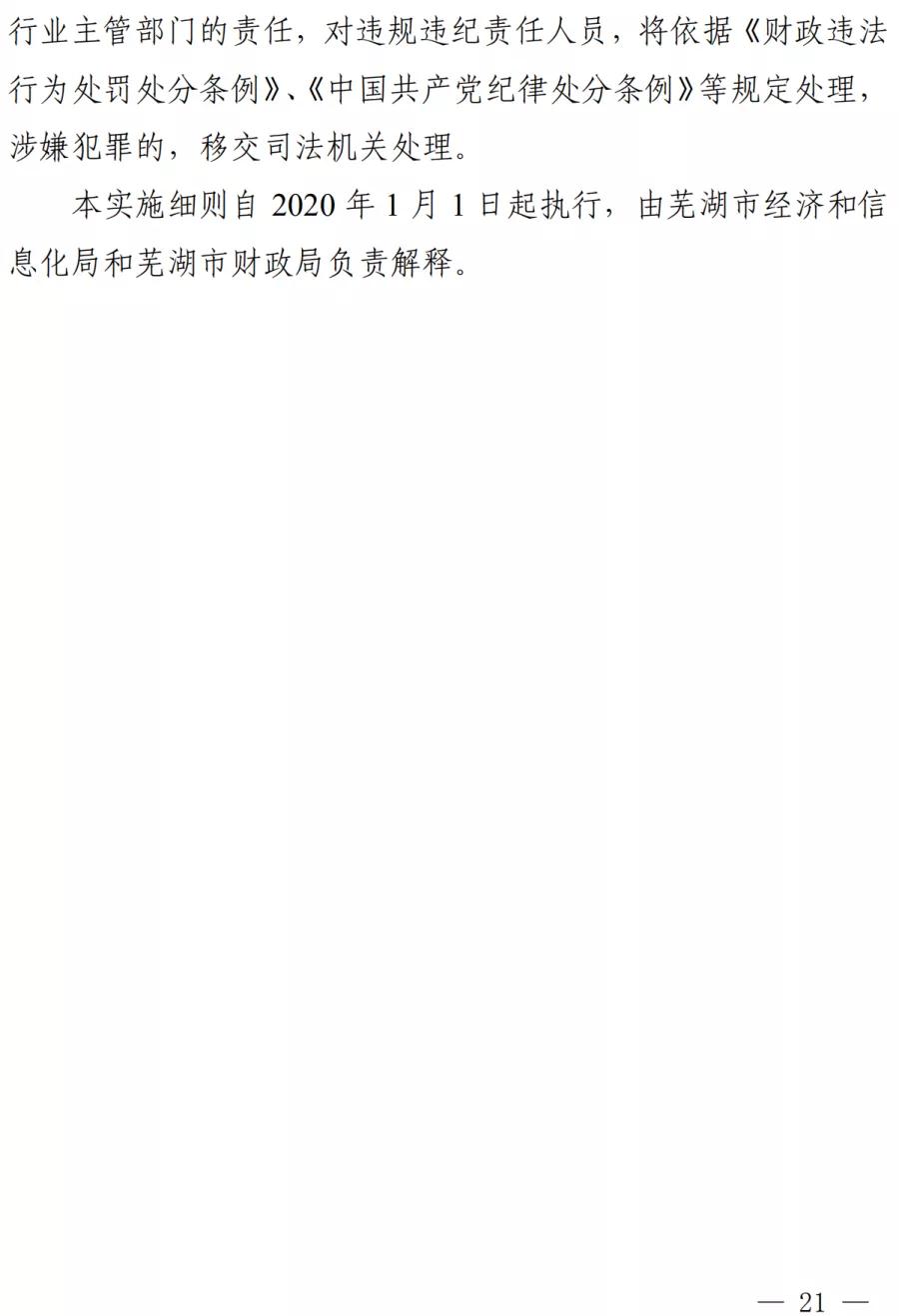 蕪湖市2020年促進(jìn)新型工業(yè)化若干政策規(guī)定實施細(xì)則印發(fā) 作者: 安徽新天源建設(shè)咨詢有限公司 最后修訂: 2021-02-05 08:59:23 摘要: 附件