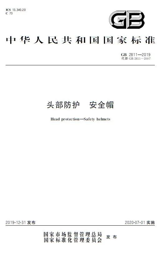 國(guó)家市場(chǎng)監(jiān)管總局、國(guó)家標(biāo)準(zhǔn)委批準(zhǔn)發(fā)布新版安全帽標(biāo)準(zhǔn)GB2811-2019《頭部防護(hù) 安全帽》,將于2020年7月1日起正式生效。