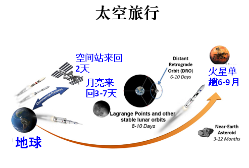 人類的太空旅行,不久就會實現(xiàn)。從下圖可以看到去各個目的地的時間。