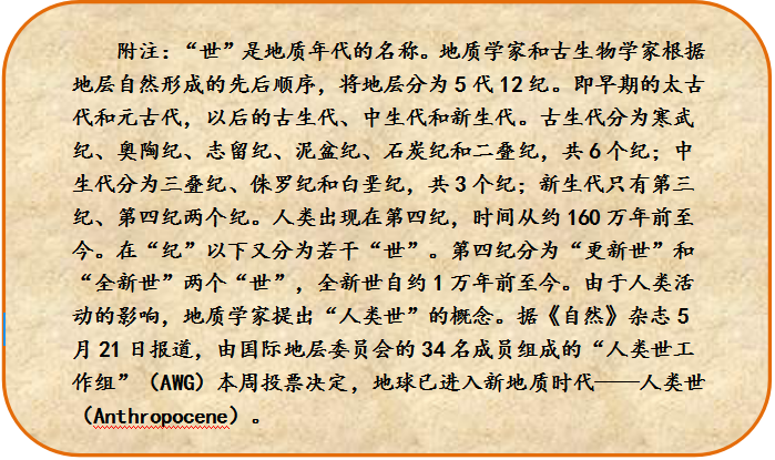 在2000年的一個(gè)國(guó)際會(huì)議上,1995年諾貝爾化學(xué)獎(jiǎng)得主保羅-克魯岑提出,當(dāng)今人類活動(dòng)對(duì)自然環(huán)境的影響已經(jīng)超過(guò)了自然狀態(tài)的變化,應(yīng)該定義一個(gè)新的地質(zhì)時(shí)代,叫人類世。我國(guó)科學(xué)家劉東生院士參加了此會(huì),回國(guó)后就極力推薦這個(gè)詞。